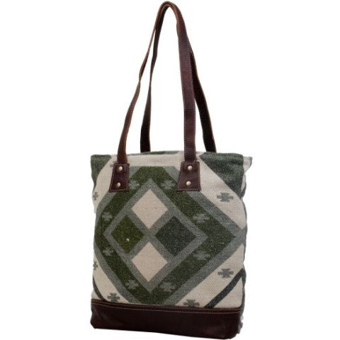 Crafted to a standard of perfection with a unique handwoven rug, this tote bag is both functional and fashionable. The beautiful combination of colors gives it an earthy charm.