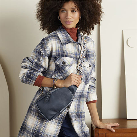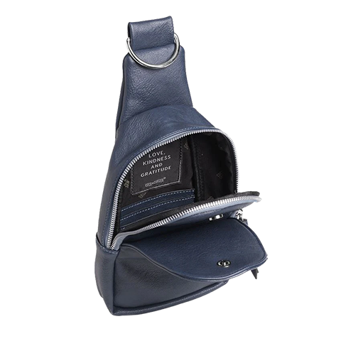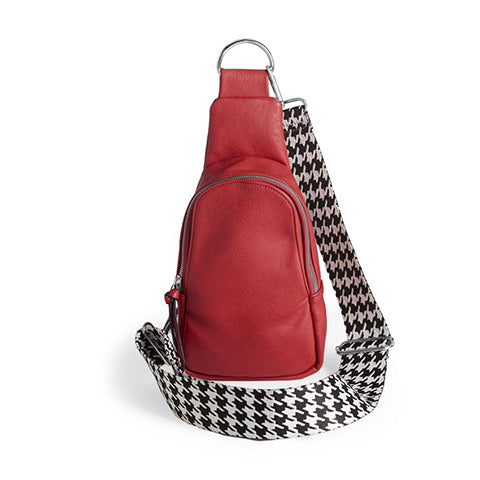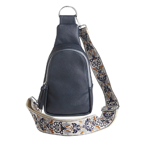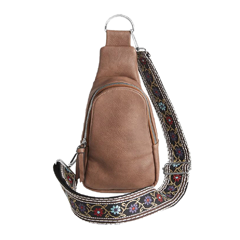 The must-have handbag of the season! This handy sling bag can be worn across the front or back and features multiple layers or storage. Inside contains a motivational mantra. Snap pocket on front, zipped-interior reveals card slots and other organization. Woven strap is adjustable and detachable, metal hardware.