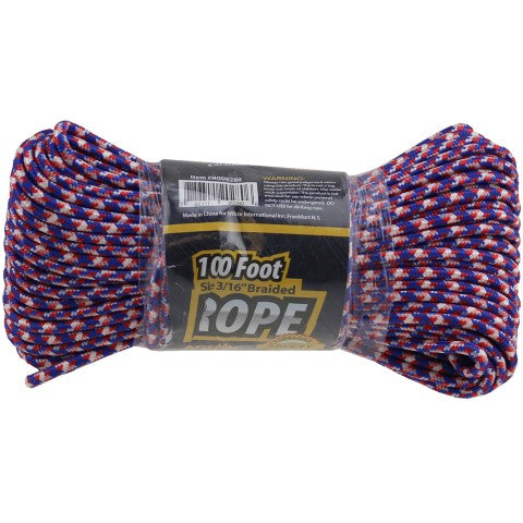This braided rope is ideal for everyday use. It is 100 ft. long, with a working load of 35 lbs., and a tested breaking strength of 210 lbs., so you'll have the strength and durability you need for your outdoor projects.