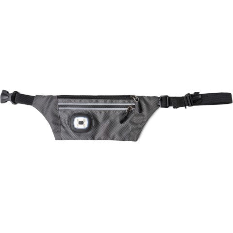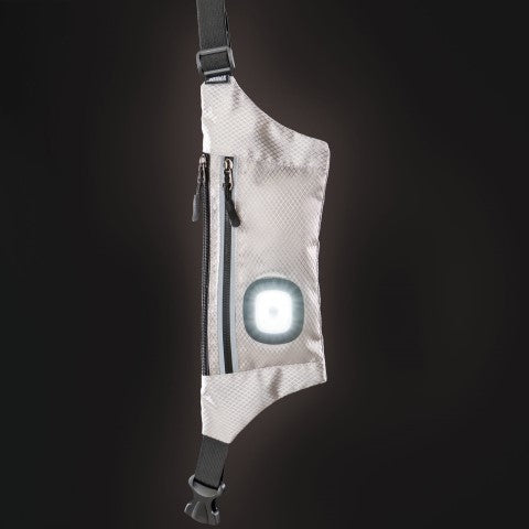 Stay safe and visible with this Rechargeable LED Sling Bag. The durable bag features a bright LED beam with push-button activation and 3 levels of brightness. The removable light pod can be easily charged via USB, providing up to 10 hours of battery life. With an adjustable strap for comfort and reflective safety tape, this bag is perfect for any adventure.