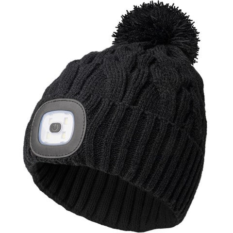 - Knit pom hat + ultra bright LED beam