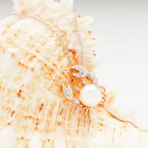 From ShanOre's Ocean Collection, the Sterling Silver Pearl Crab Necklace encourages the wearer to be more vulnerable. The crab represents strong self-defense abilities, while the round white pearl refines intuition. Moreover, rose gold enhances the feminine appeal. Finally, the white crystals create a soothing aura.