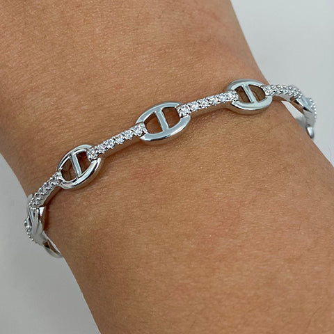 Brass Cubic Zirconia Row Buckle Cuff Bracelet