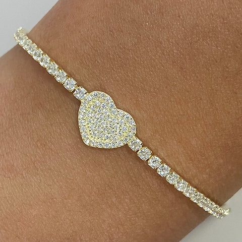 Pave Heart Halo Tennis Slider Bracelet
