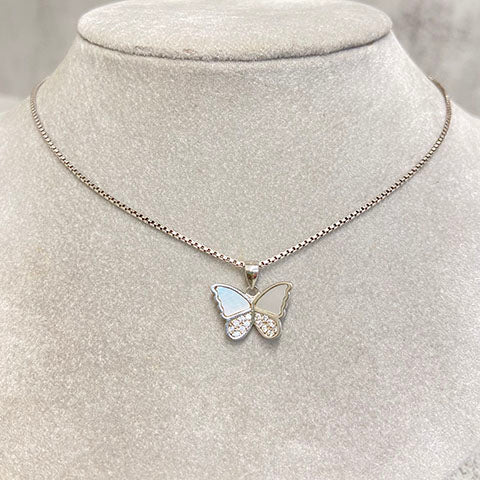 Our Sparkly Opal Butterfly Necklace is sure to make a statement! Crafted in shimmering silver, this stylishly sparkly butterfly sparkles with alluring opal wings. Add a little something special to your wardrobe and flutter around in style. Exquisite and eye-catching, this is one accessory you won't want to miss!