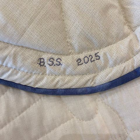 Sweet as springtime and stitched with sentiment, this Hearts Bouquet quilt combines soft peach, airy white, and calming blue — a timeless palette that feels both nostalgic and fresh. Heart patterns have long been used to symbolize love, friendship, and cherished memories, often made from leftover dress fabrics to honor loved ones. It's locally hand quilted by Barbara Stoltzfus. Enjoy this heirloom creation!