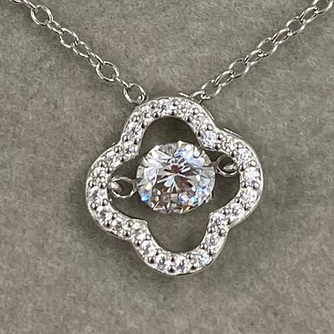 Pave Quatrefoil with Dancing Cubic Zirconia Necklace